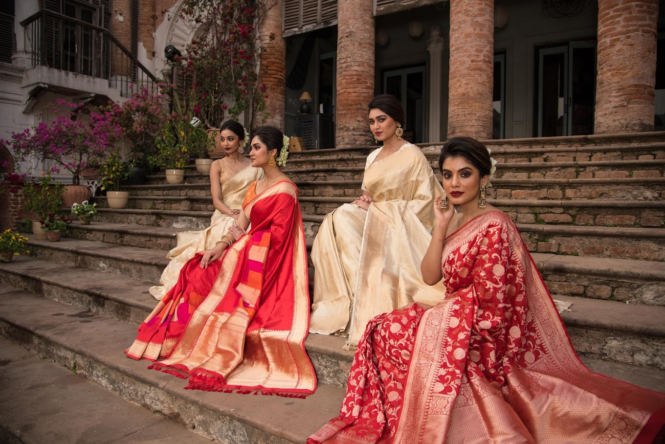 Bridal Red Katan Silk Kaduwa Buta Skirt Border Saree