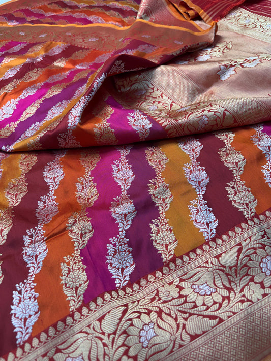 Pure Banarasi Katan Silk Kadhwa Rangkaat Saree