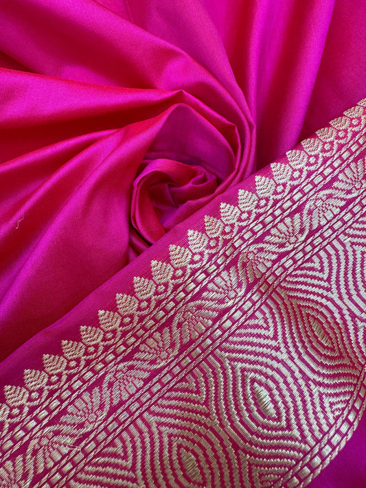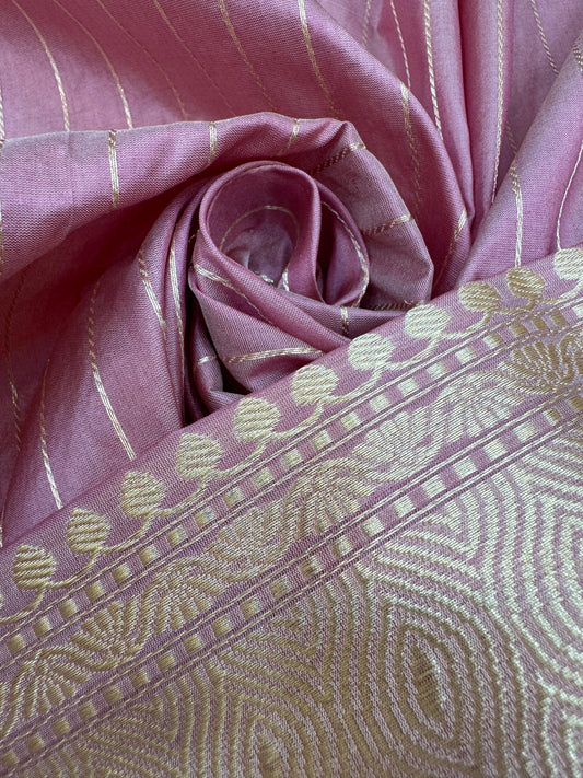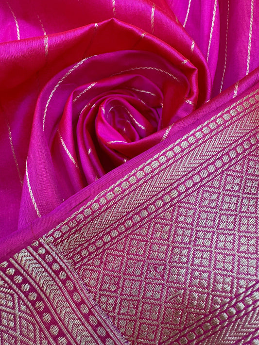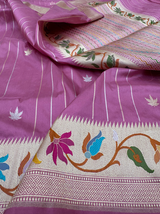 Pure Banarasi Katan Silk Buti Stripe Paithani Border Saree