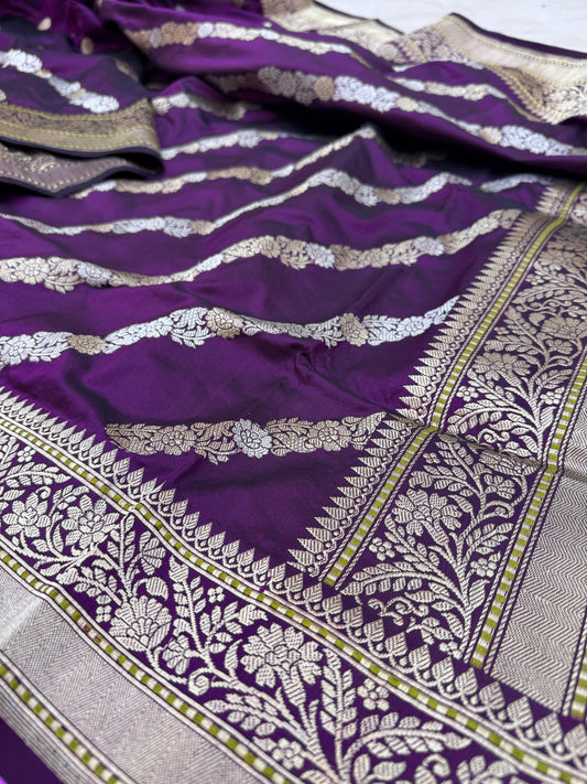 Pure Banarasi Katan Silk Sona Rupa cross buta saree
