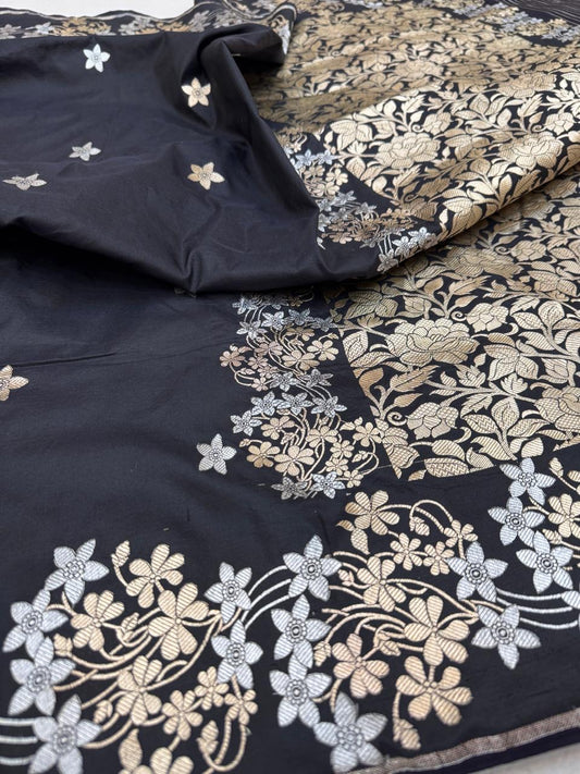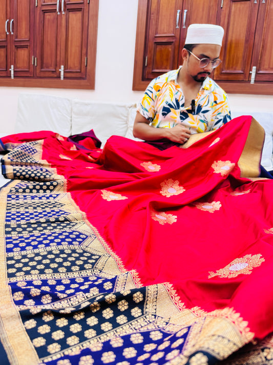 Pure Banarasi Katan Silk Rose Buta Saree
