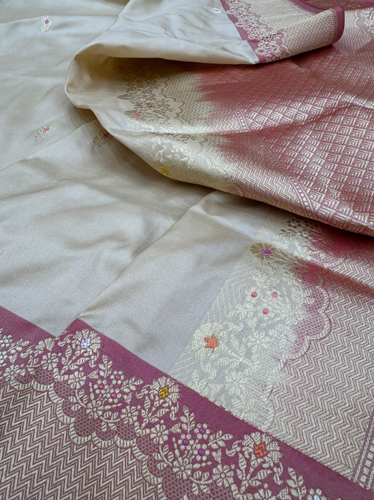 Pure Banarasi Katan Silk Kadiyal Border Saree