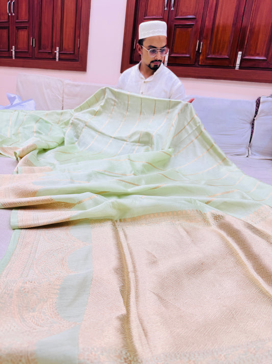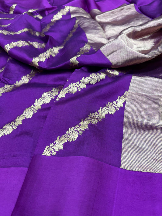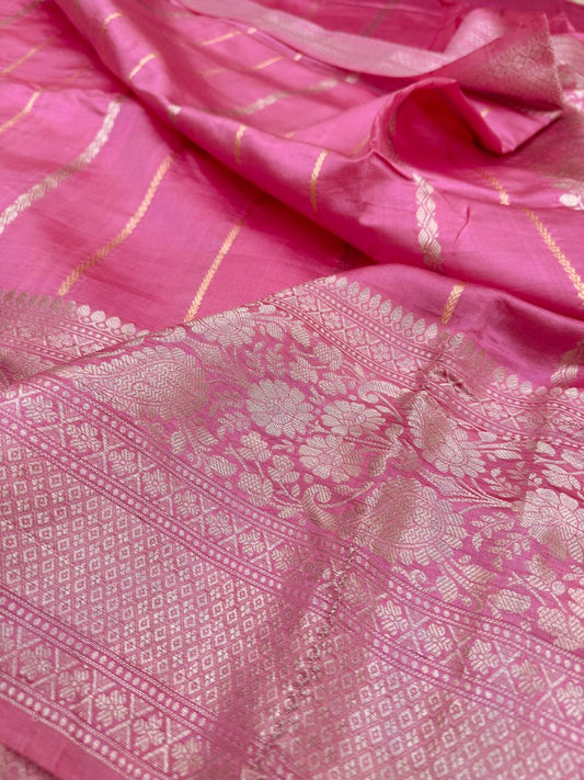 Pure Banarasi Dupion Silk Strips Satin Border Saree