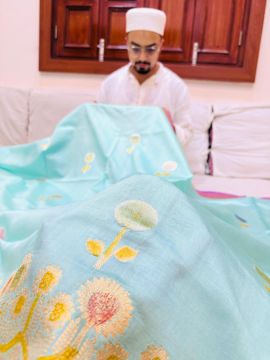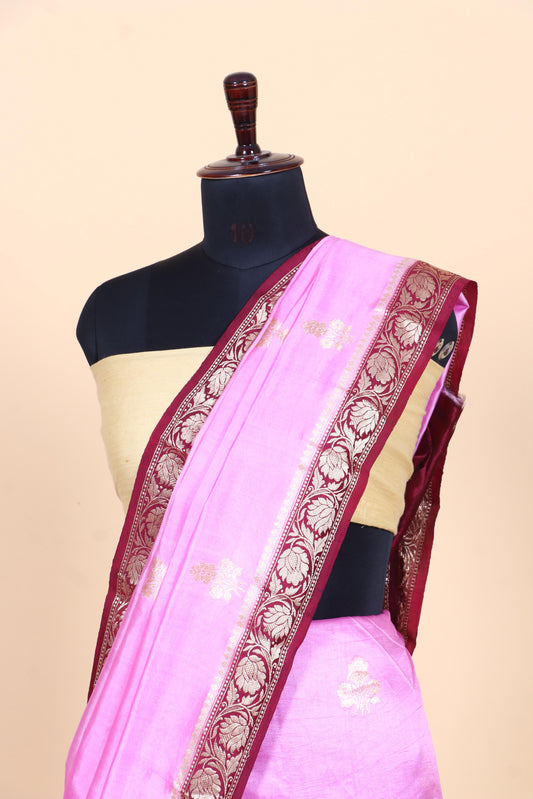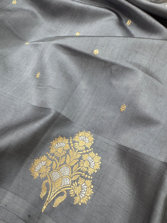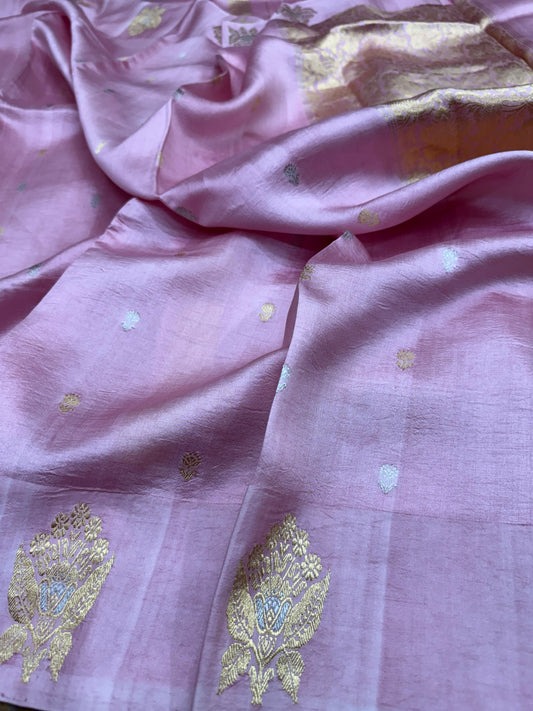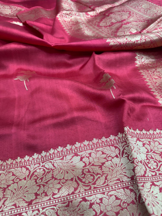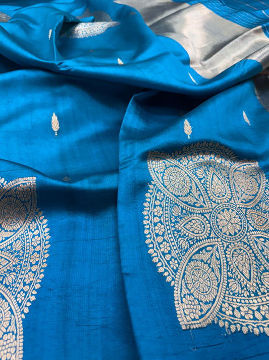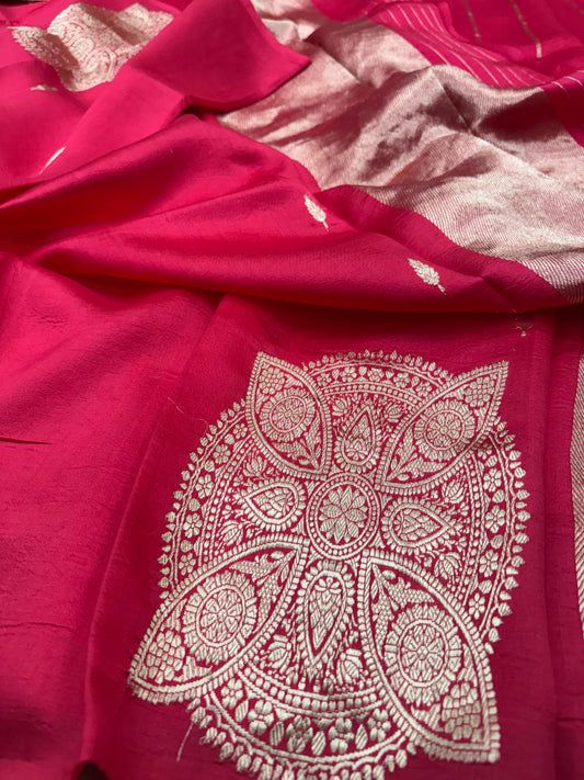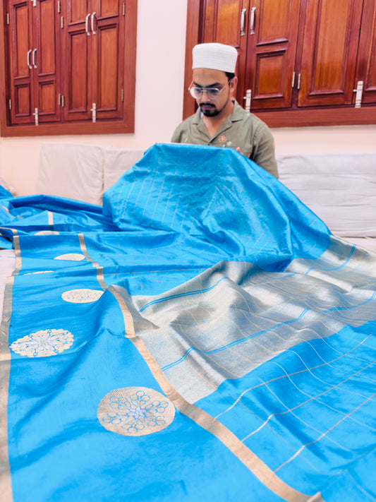 Pure Banarasi Dupion Silk Kadhwa Buta Circle Border Saree