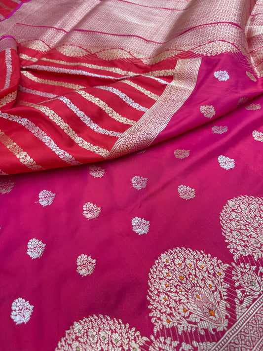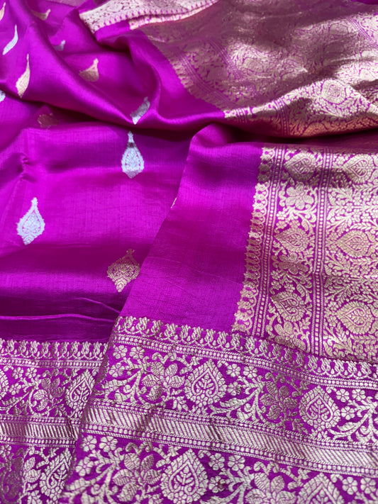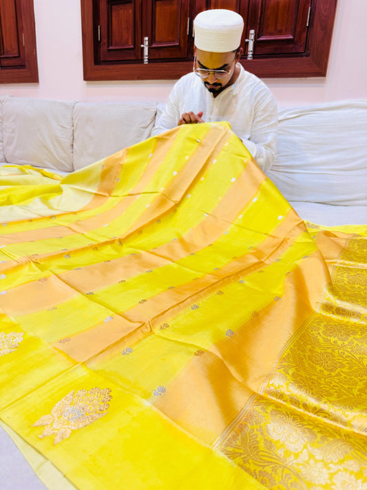 Pure Banarasi Dupion Silk Kadhwa Buta Saree