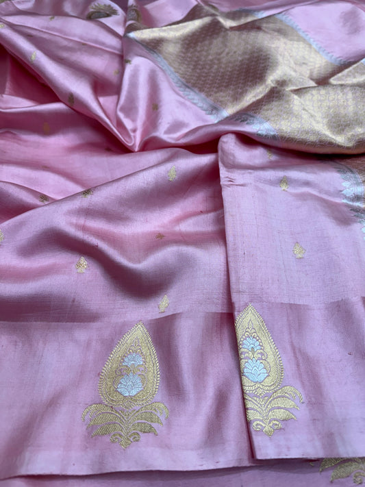 Pure Banarasi Dupion Silk Kadhwa Buta Satin Border Saree