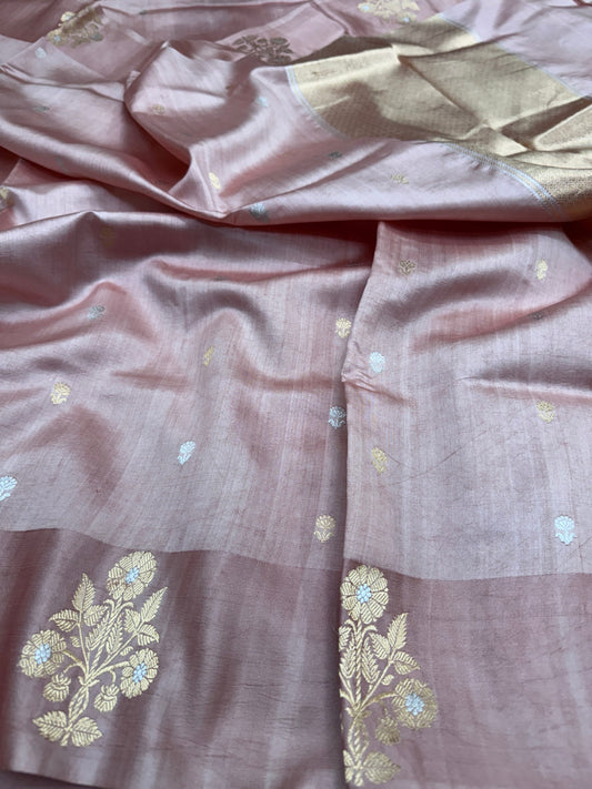 Pure Banarasi Dupion Silk Kadhwa Buta Handbrush Saree