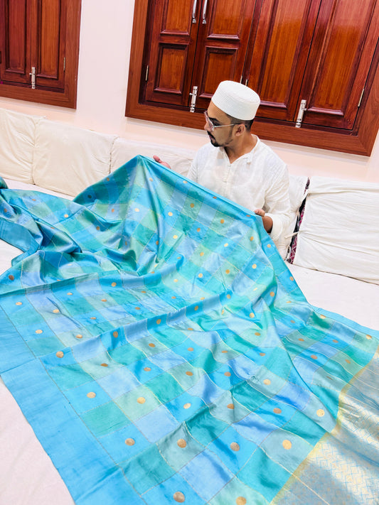 Pure Banarasi Dupion Silk Check Buti Saree With Satin Border
