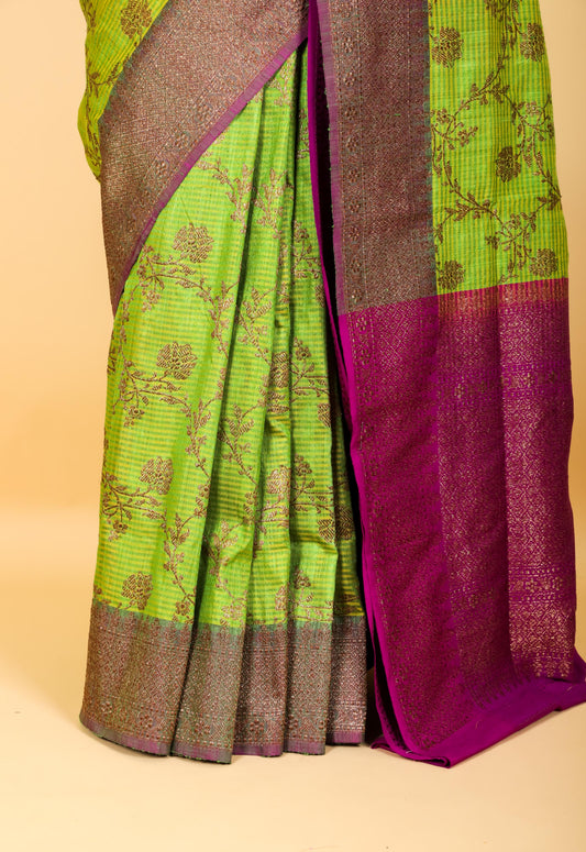 Pure Banarasi Dupion Silk Checks Satin Border Saree