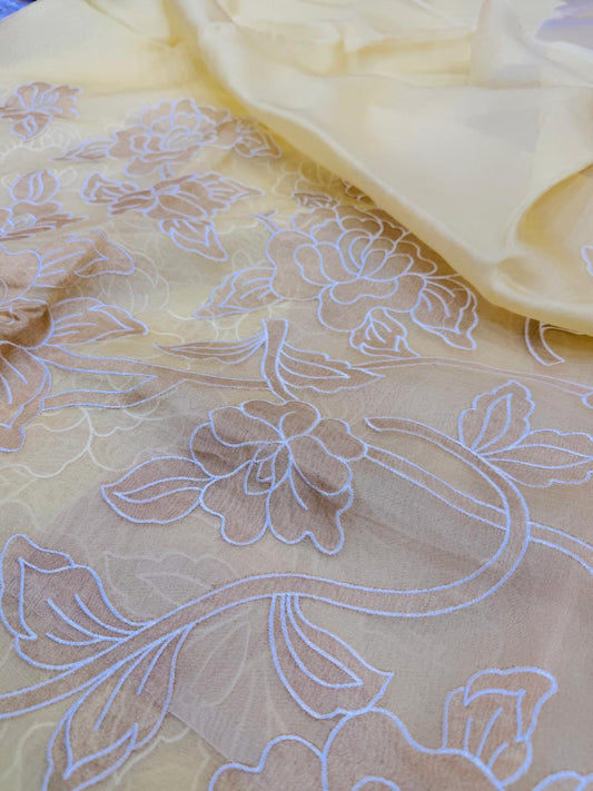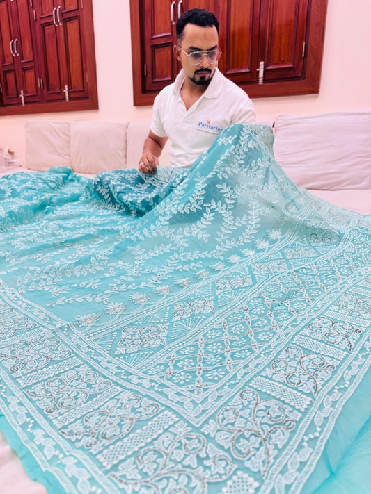 Pure Banarasi Kora Silk Chikankari Embroidery Saree