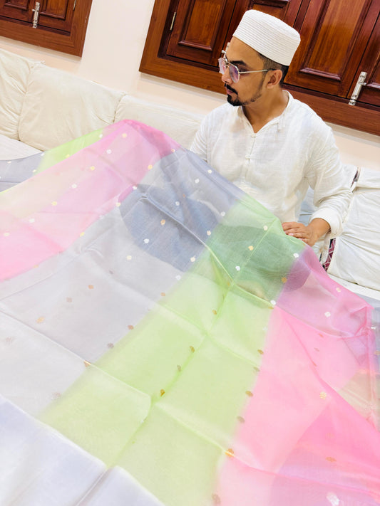 Pure Banarasi Organza Silk Rangkaat Half and Half Saree