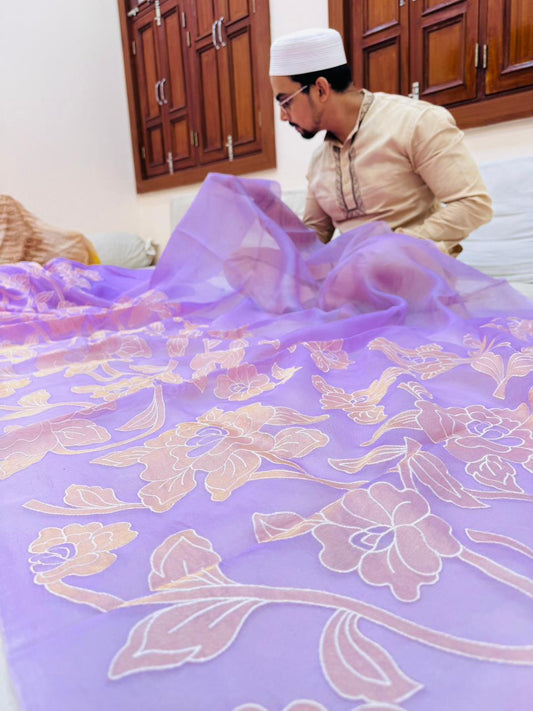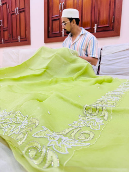 Pure Banarasi Kora Tissue Silk Applique Work Saree