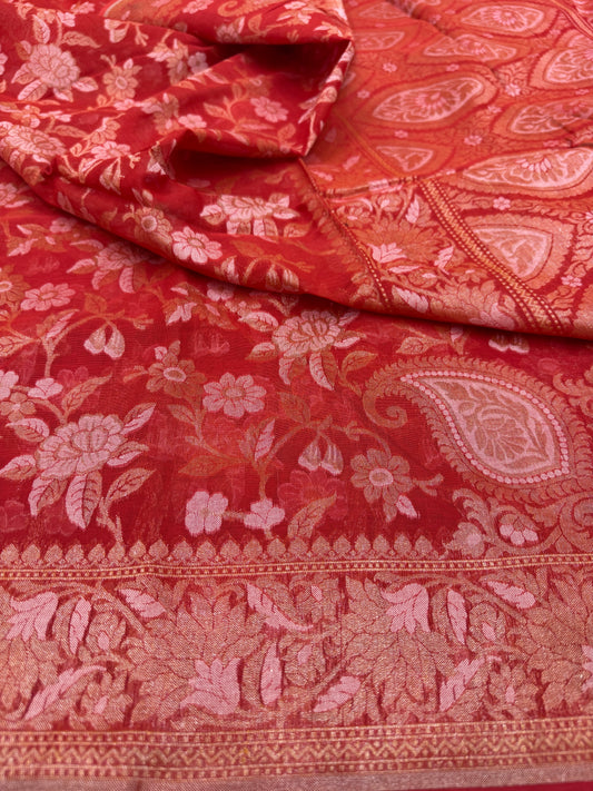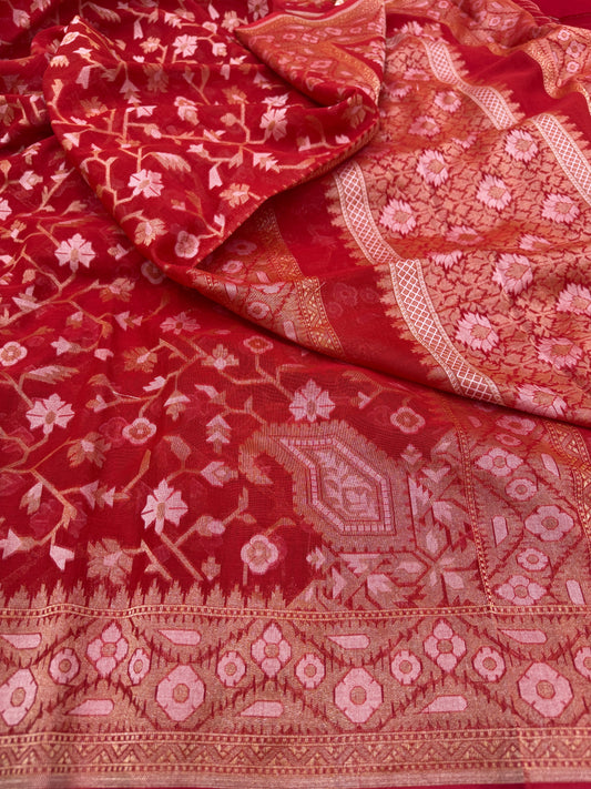 Pure Banarasi Katan Silk Jaal Saree