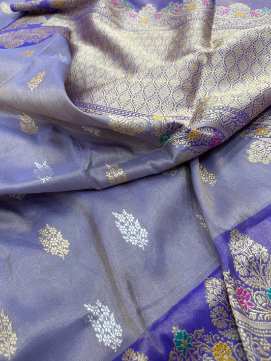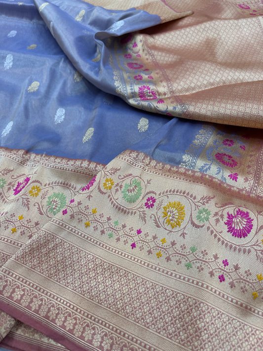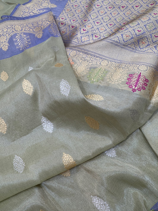 Pure Banarasi Katan Tissue Silk Kadiyal Border Saree