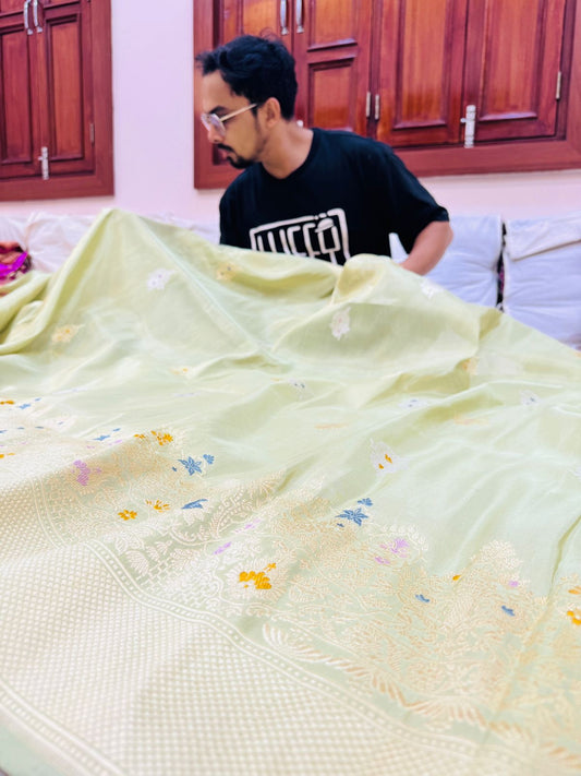 Pure Banarasi Katan Tissue Silk Tasted Zari Saree