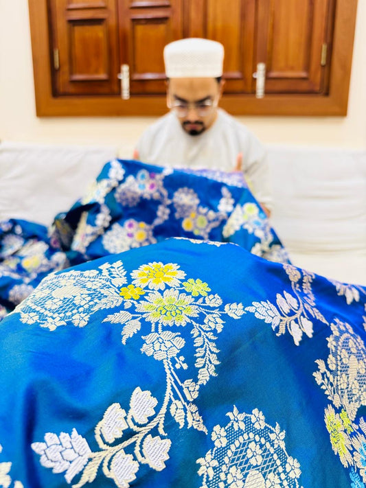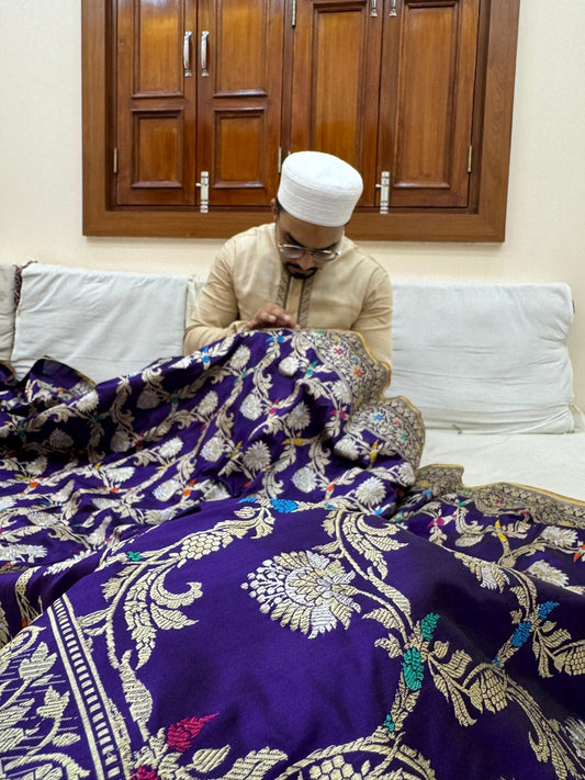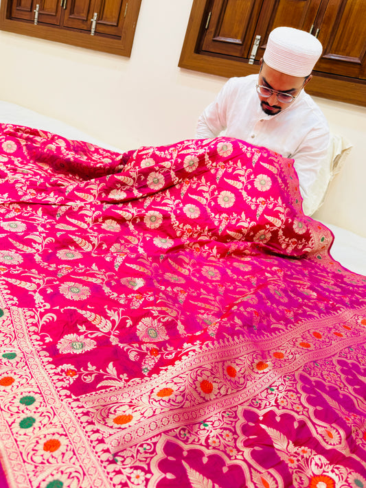 Pure Banarasi Katan Silk Mina Jaal Saree