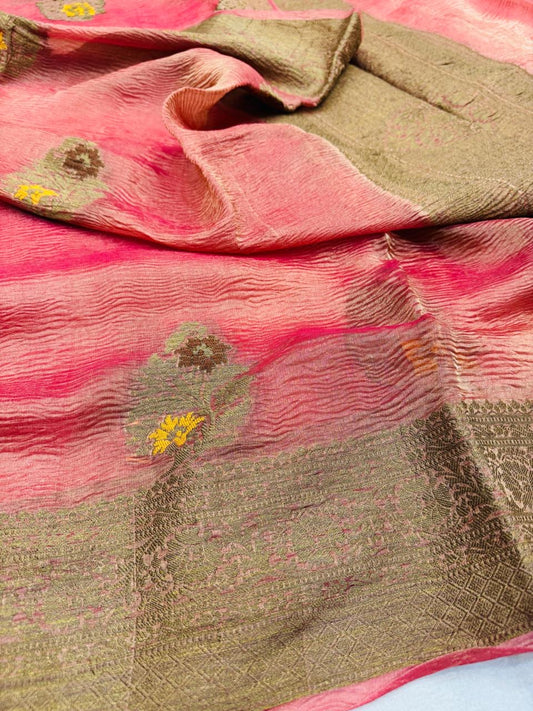 Pure Banarasi Kora Tissue Silk Stripe Saree