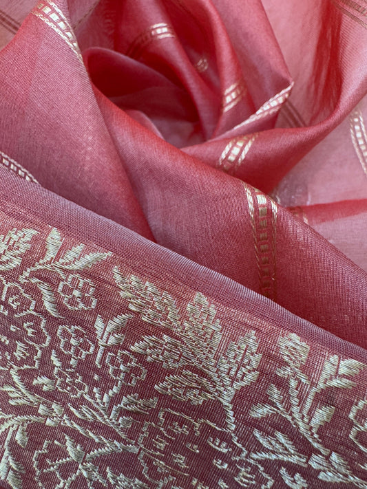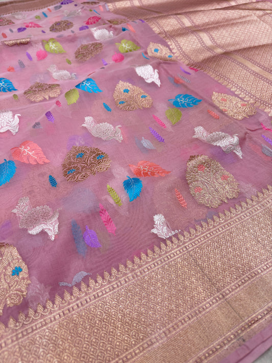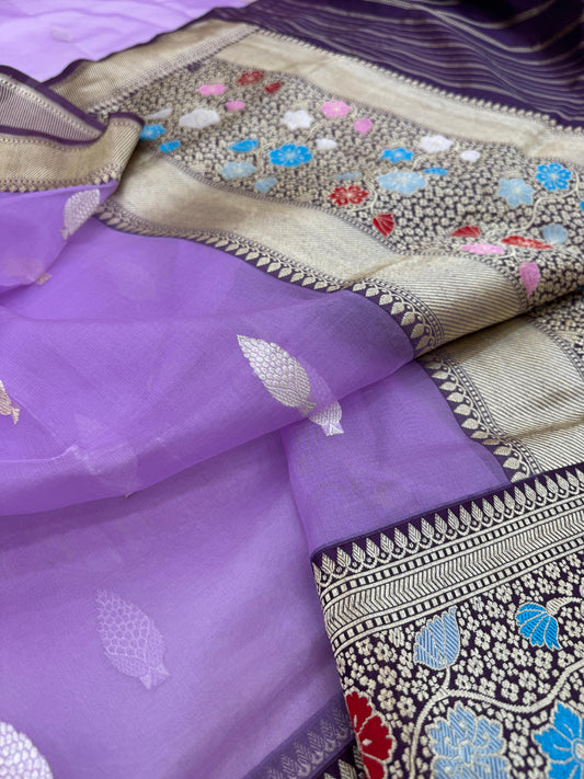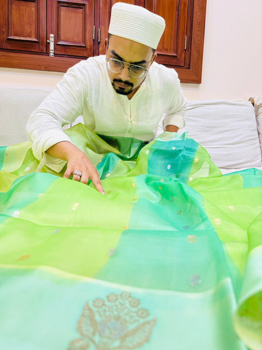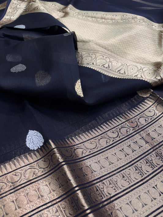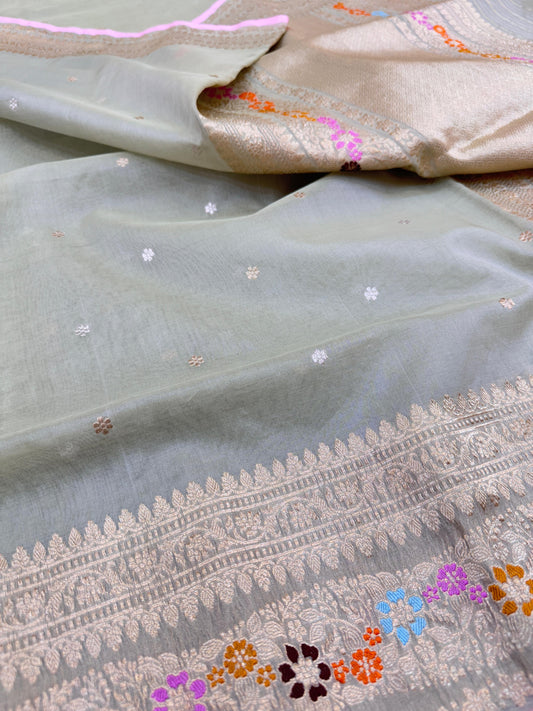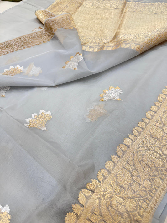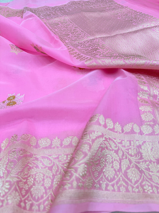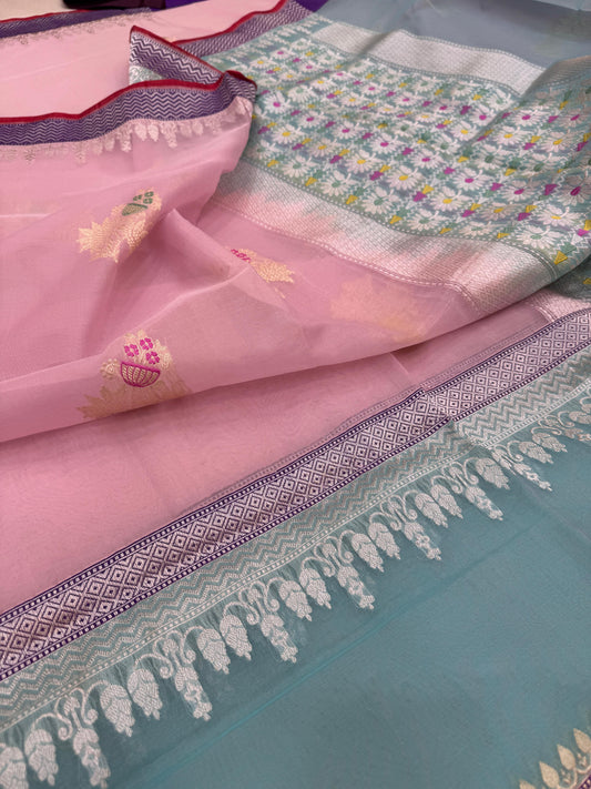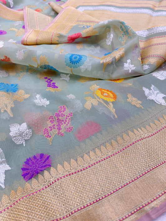 Pure Banarasi Organza Silk Kadhwa Buta Open Border Saree