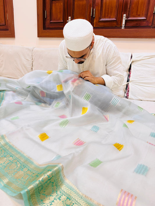 Pure Banarasi kora Silk Kadhwa Jaal Saree
