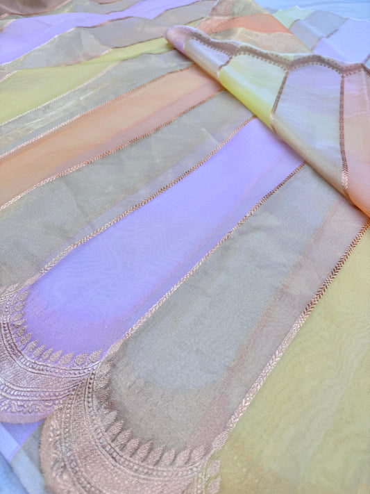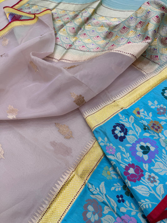 Pure Banarasi Organza Silk Rangkaat Half and Half Saree