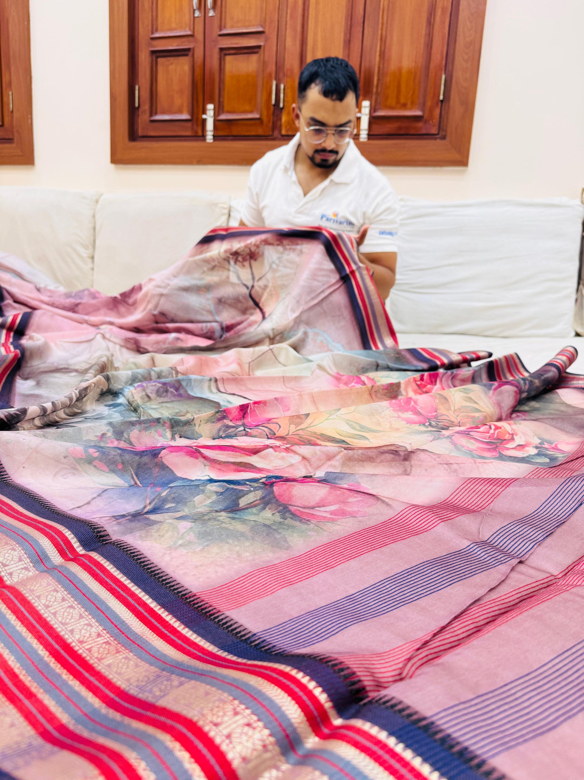 Pure Banarasi Chanderi Digital Print Saree