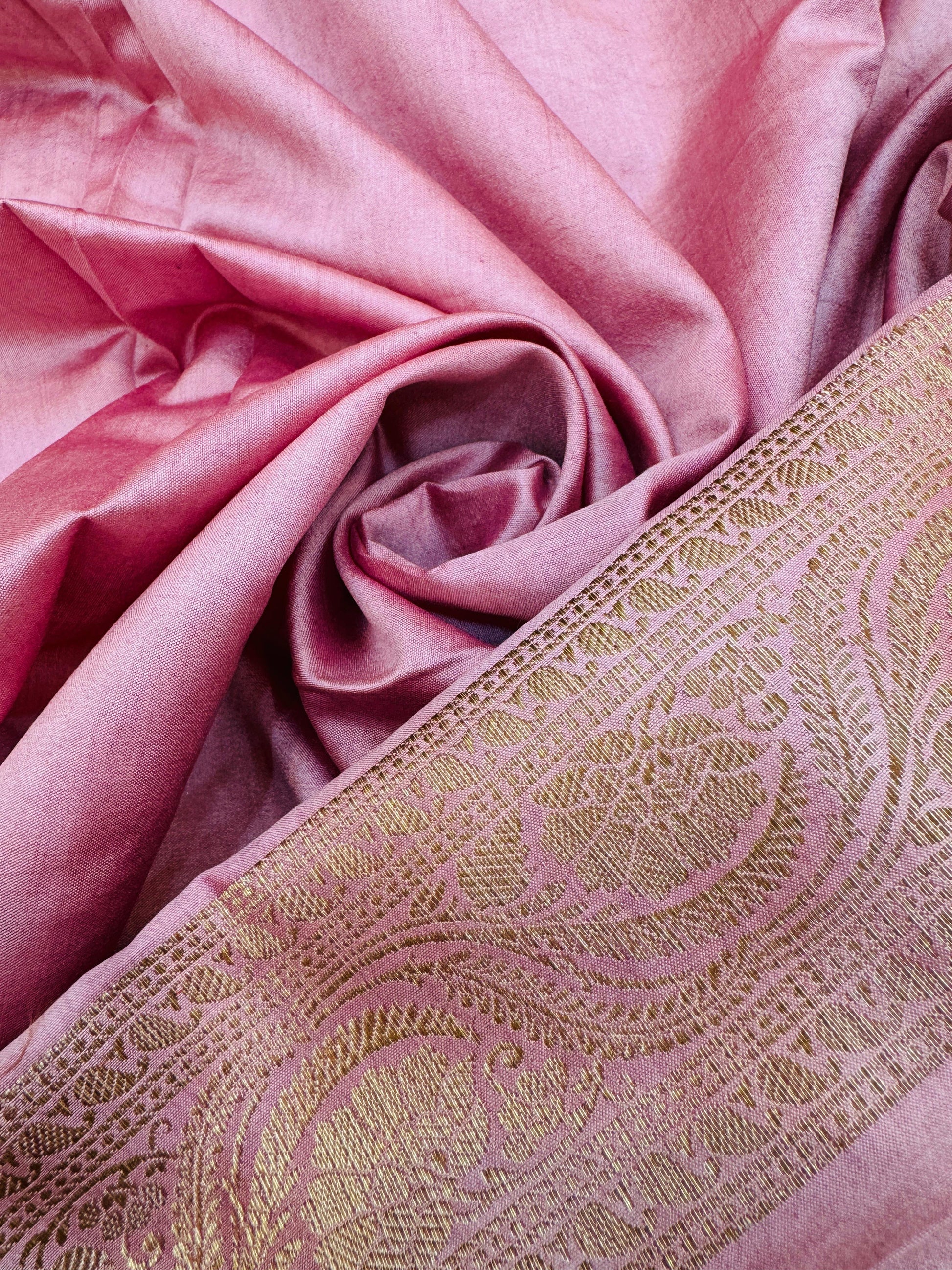 A luxurious Pure Banarasi Chiniya Silk Buta Saree, celebrated for its soft texture, natural sheen, and graceful drape. Adorned with intricately handwoven buta motifs, this saree beautifully showcases the artistry of Banarasi weaving. Finished with a classic border and pallu, it exudes timeless elegance, making it perfect for weddings, festive occasions, and evening celebrations.