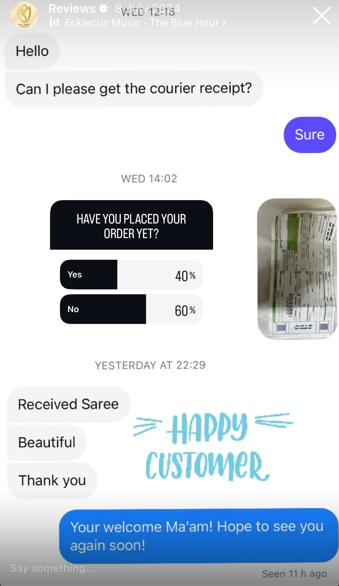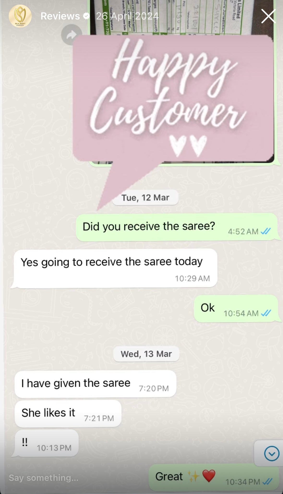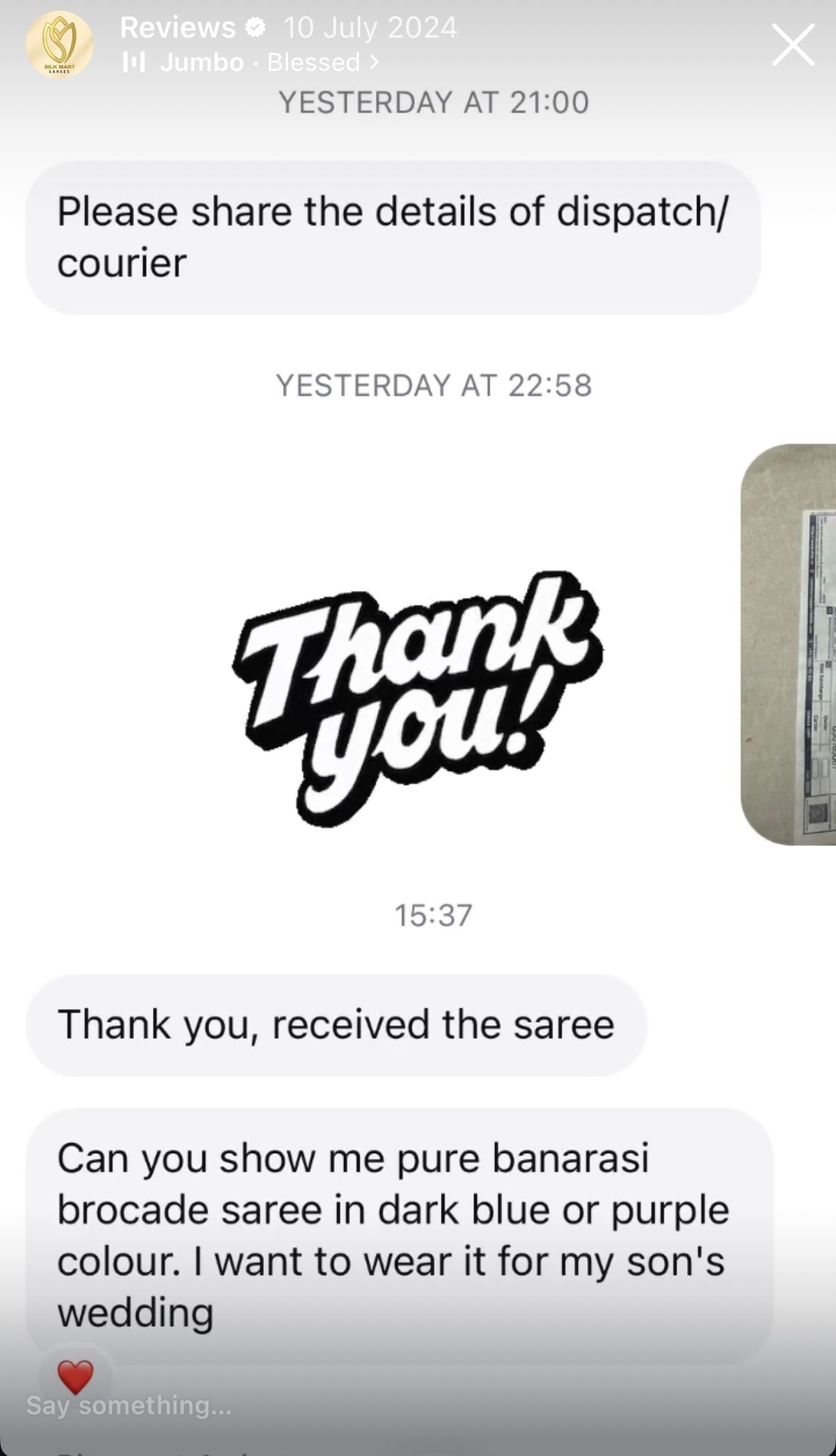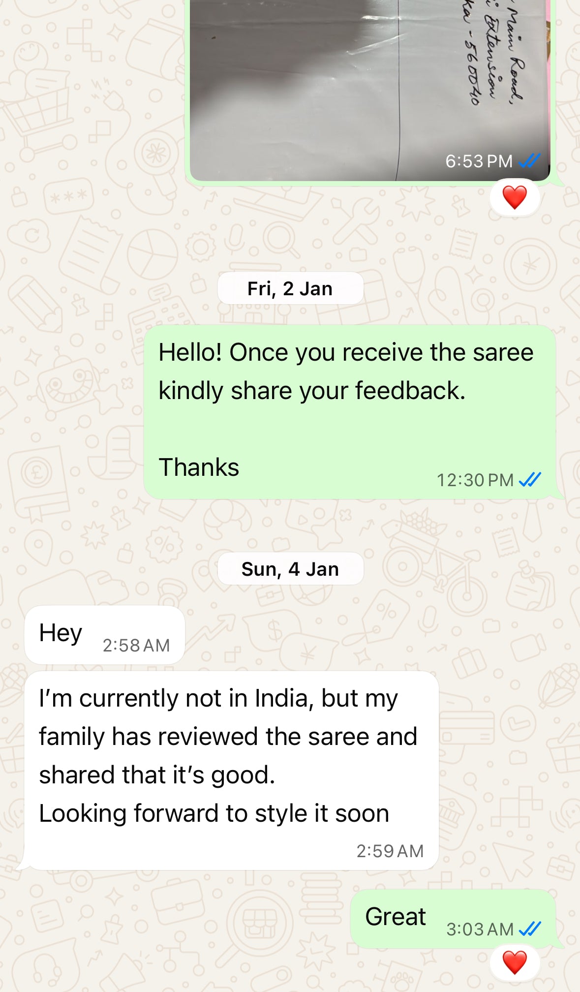 If a saree is not avilable in stock, for a cutwork saree, it will take 10-15 days and for a handwoven saree it will take atleast 30-45 days for weaving and fininshing