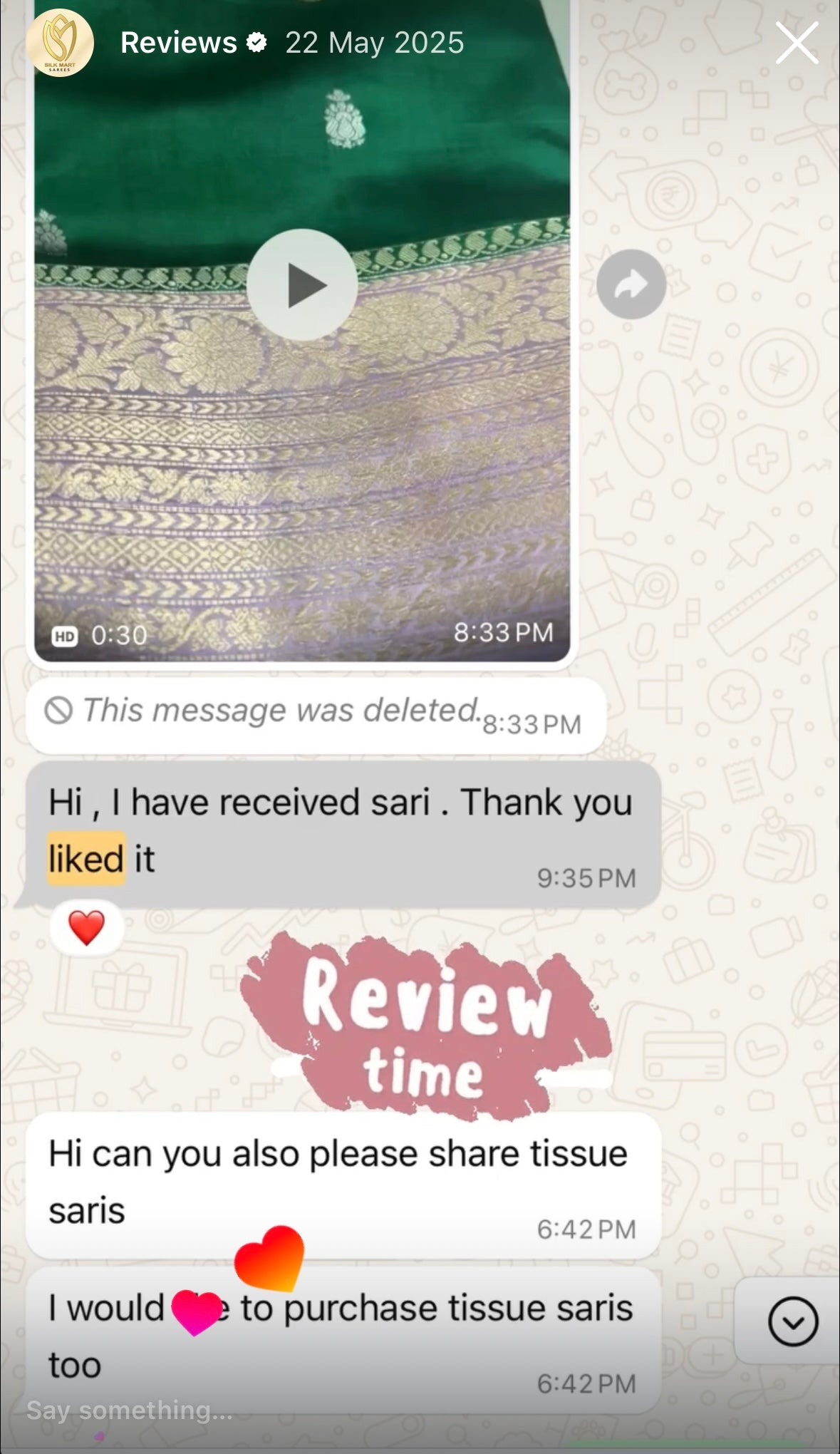 Rooted in the heritage of Banaras, we bring you 100% authentic handloom Banarasi sarees — directly from the skilled weavers to your wardrobe. Every drape is a blend of tradition, elegance, and timeless craftsmanship.