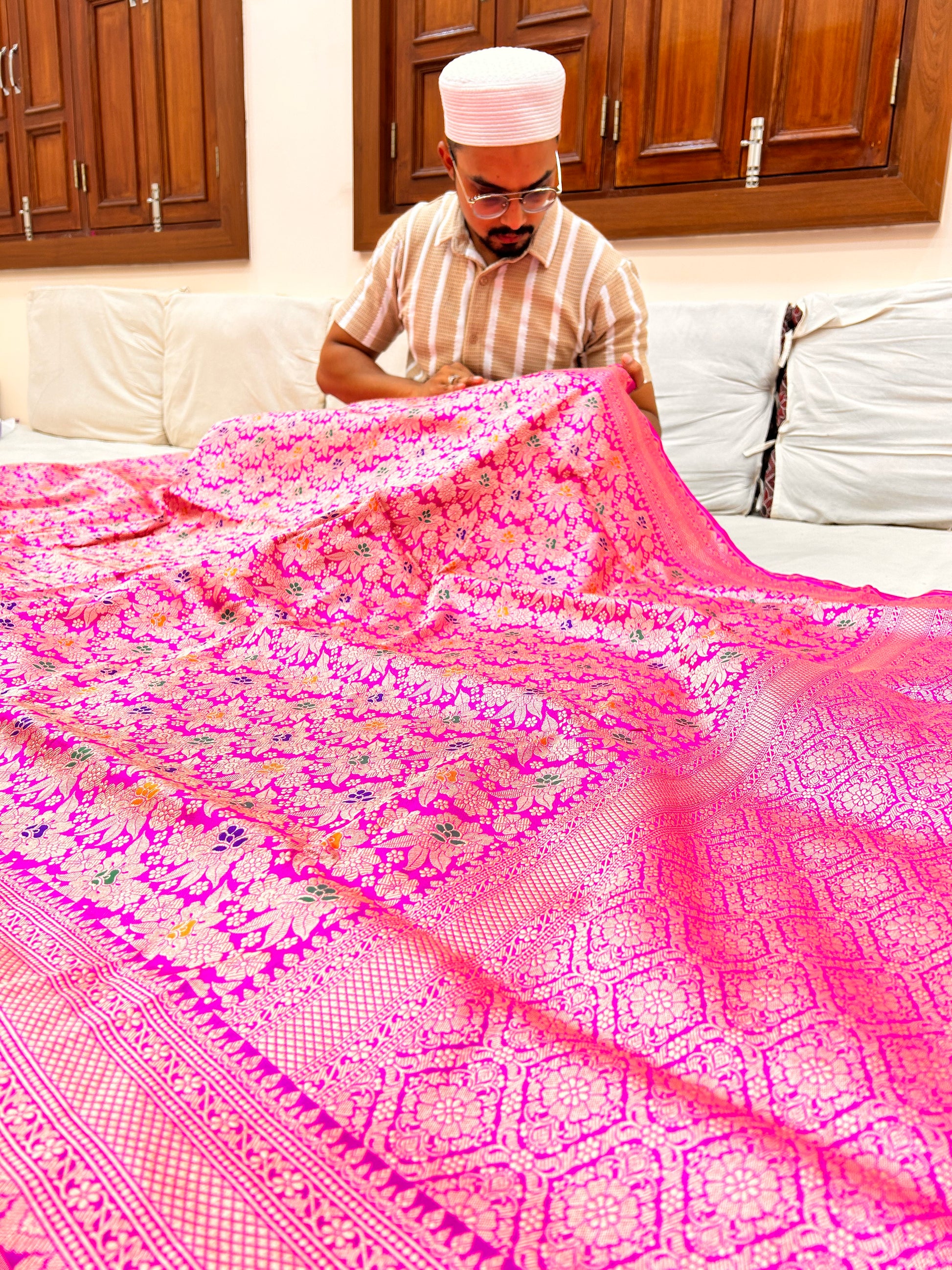 Rooted in the heritage of Banaras, we bring you 100% authentic handloom Banarasi sarees — directly from the skilled weavers to your wardrobe. Every drape is a blend of tradition, elegance, and timeless craftsmanship.