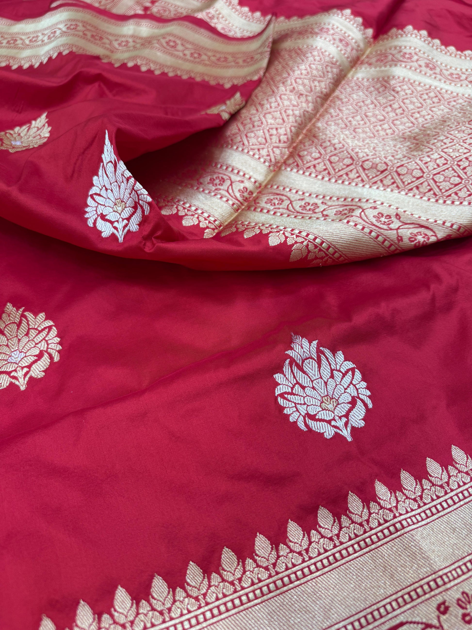 Rooted in the heritage of Banaras, we bring you 100% authentic handloom Banarasi sarees — directly from the skilled weavers to your wardrobe. Every drape is a blend of tradition, elegance, and timeless craftsmanship.