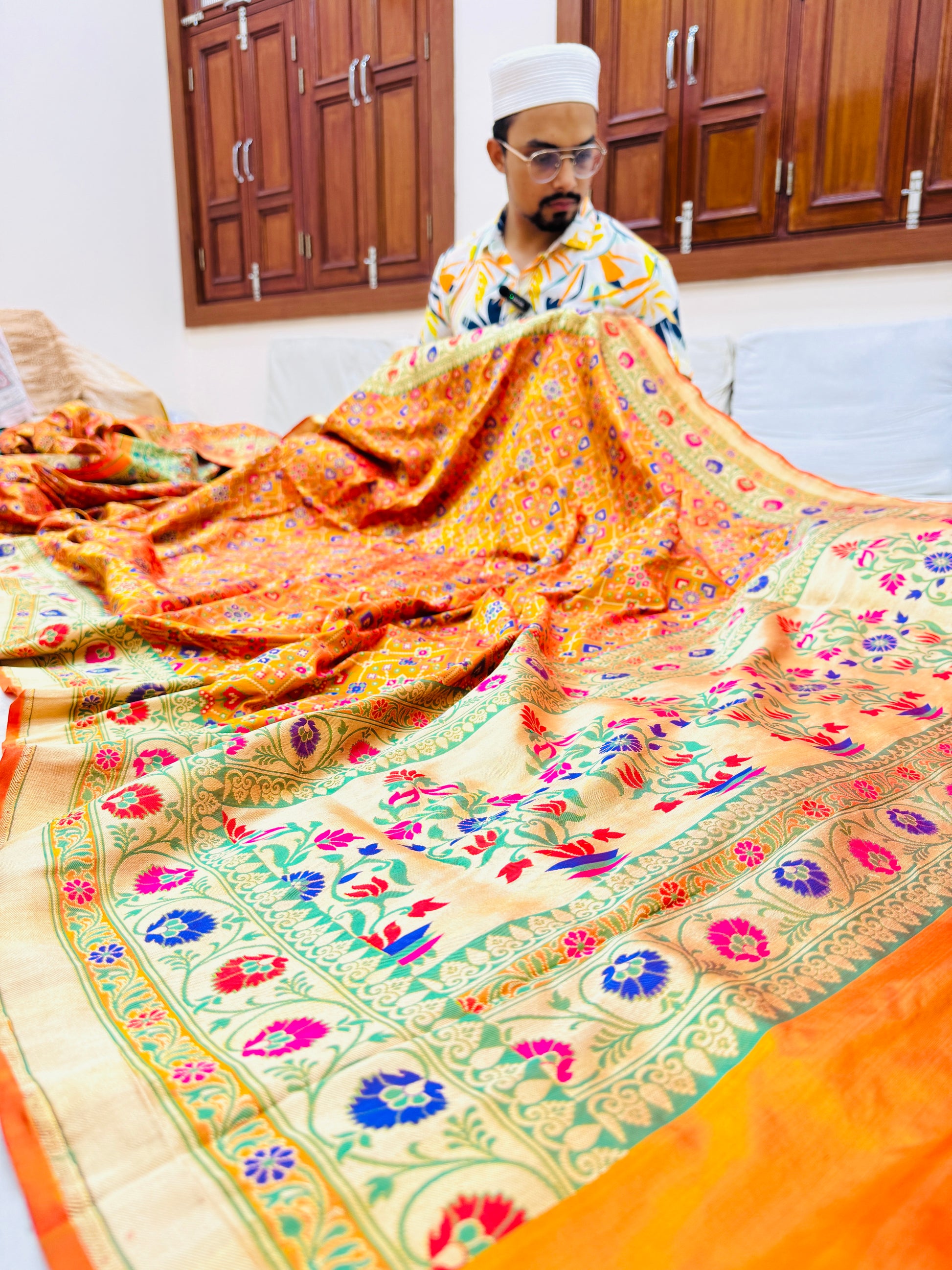 Rooted in the heritage of Banaras, we bring you 100% authentic handloom Banarasi sarees — directly from the skilled weavers to your wardrobe. Every drape is a blend of tradition, elegance, and timeless craftsmanship.