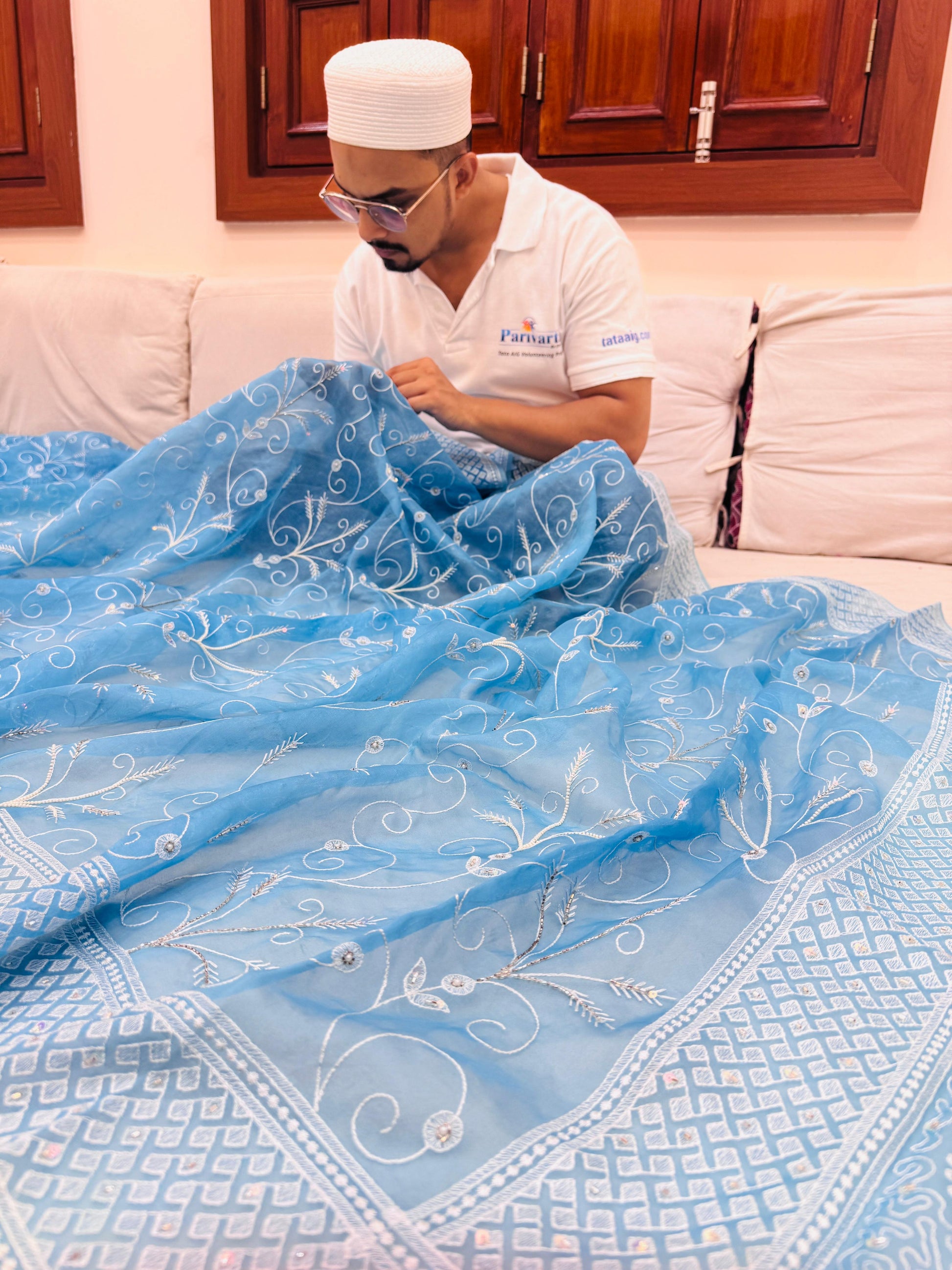 Pure Banarasi Kora Silk Chikankari Embroidery Saree