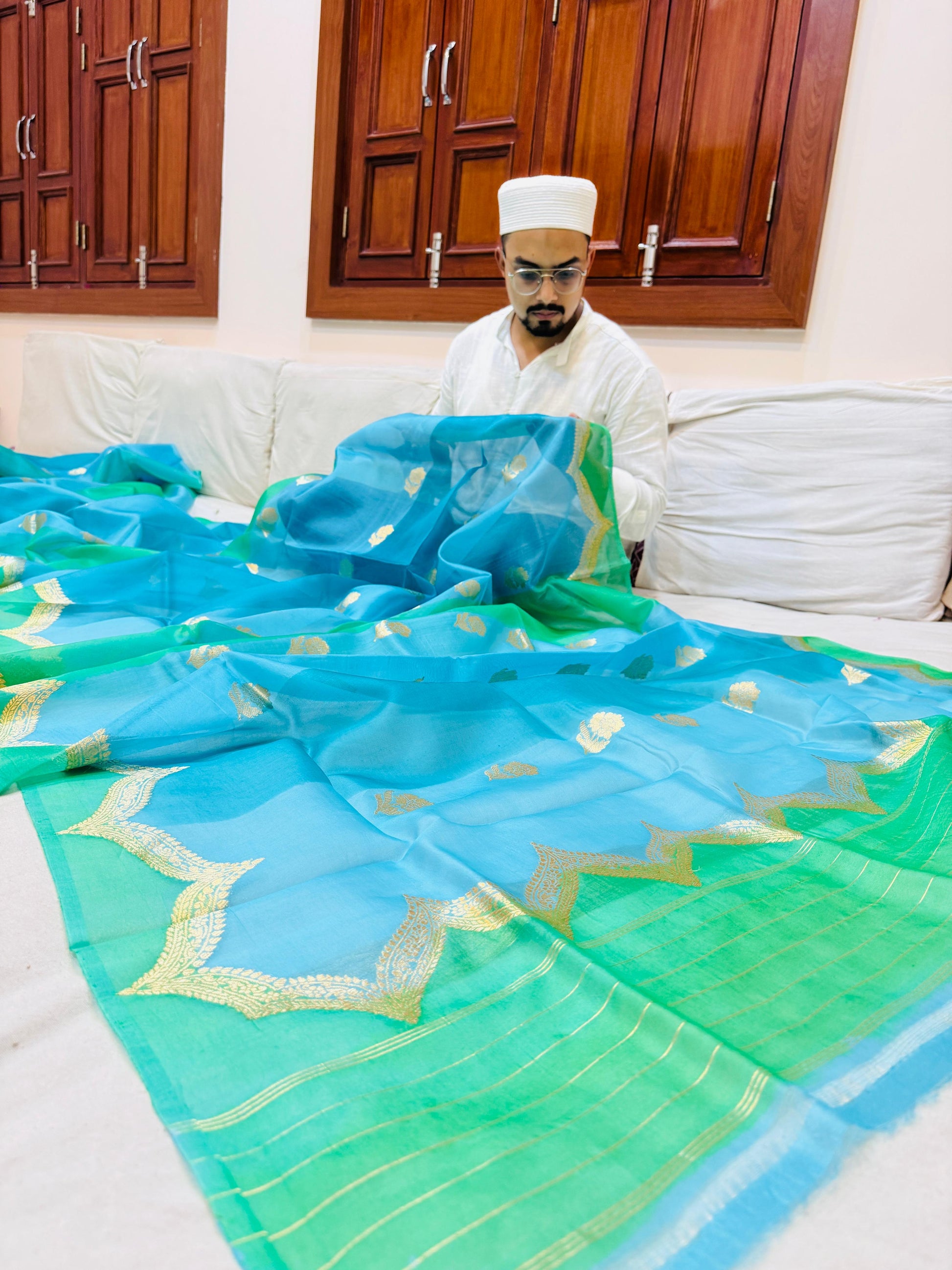 Pure Banarasi Organza Silk Kadhwa Buta Open Border Saree