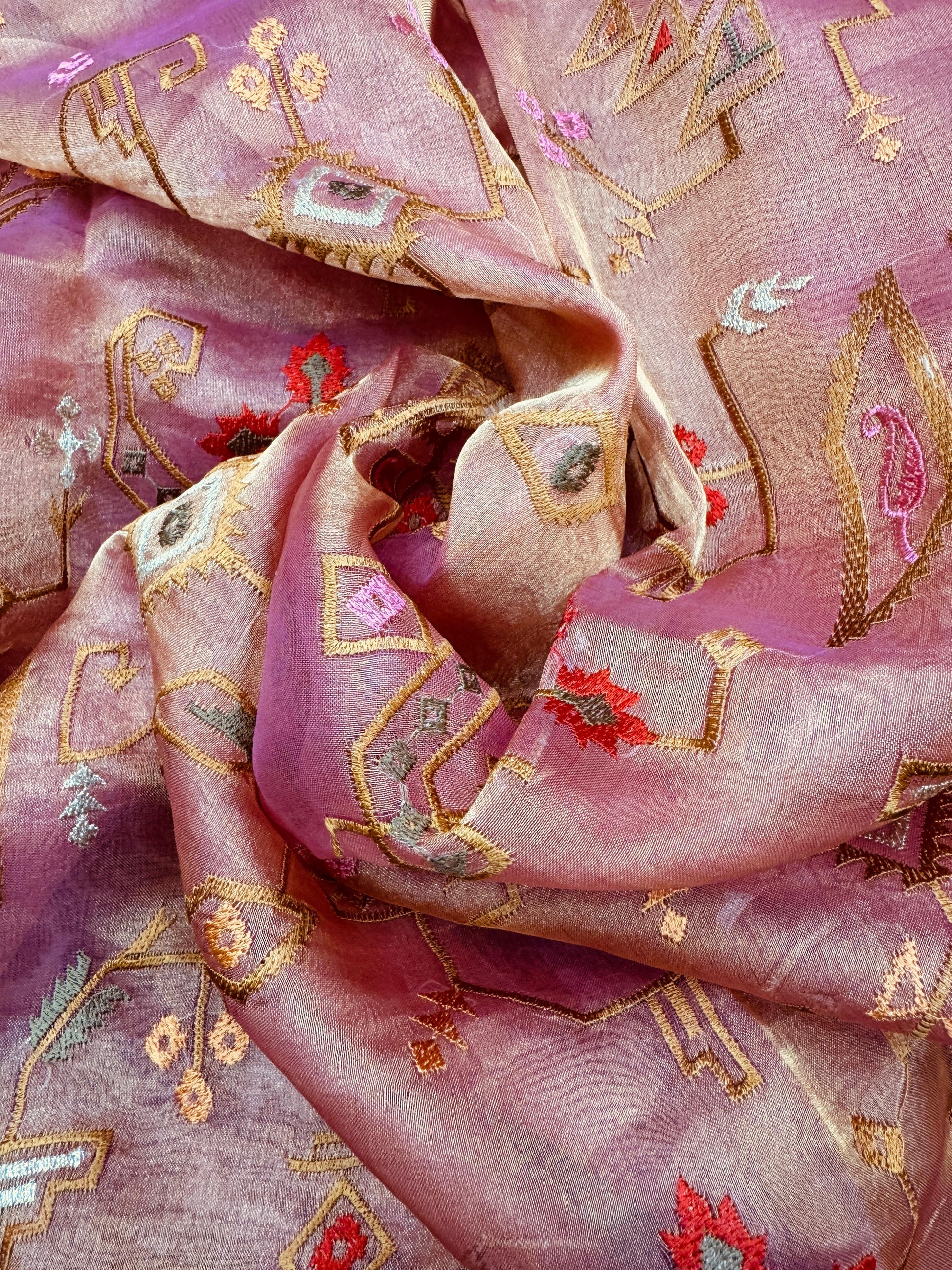 Experience sheer elegance with our Pure Banarasi Tissue Paithani Embroidery Saree . Woven from premium tissue silk, this saree offers a luminous sheen and a feather-light drape. Exquisite hand embroidery, featuring fine resham, zari, adds a touch of sparkle and sophistication. The look is elevated with a beautifully woven resham border adorned with classic Banarasi floral motifs, giving it a timeless appeal. Perfect for weddings, festive occasions, and special celebrations, this saree is a true expression of tradition, artistry, and luxury .